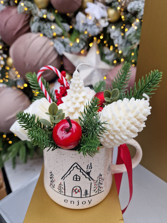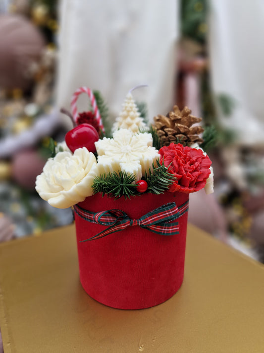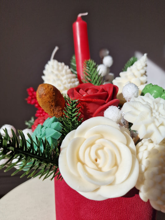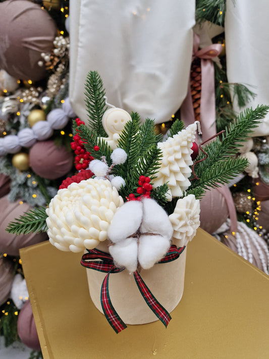 Aranjament de Craciun - Flori de bumbac si lumanari