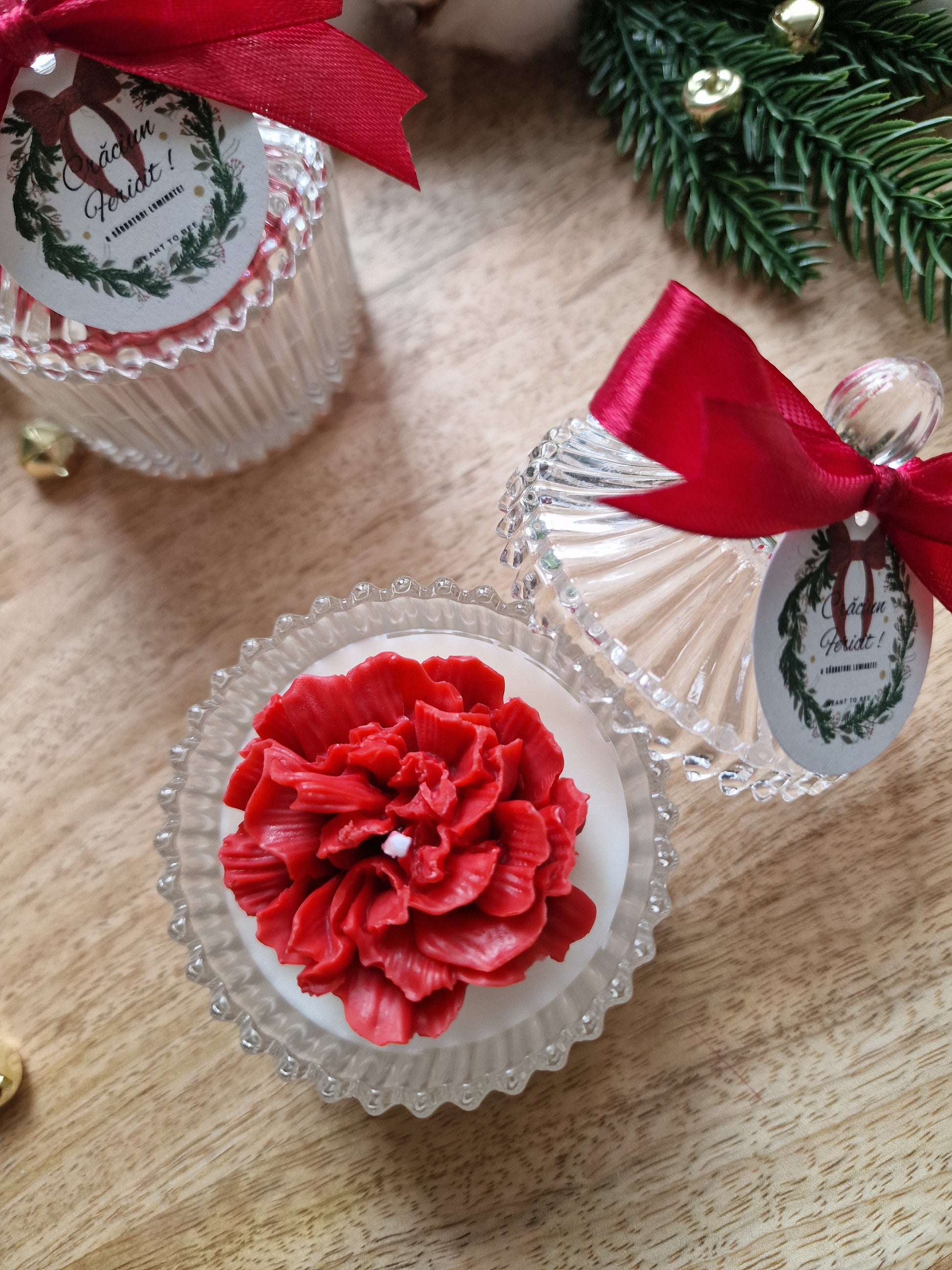 Lumânările decorative pentru Crăciun aduc căldură, eleganță și o atmosferă unică oricărui interior. Lumânarea noastra craciunita in bomboniera-recipient de sticla, combină estetica și funcționalitatea. Este perfectă ca element decorativ, un cadou atent pentru cei dragi sau un cadou corporate elegant .