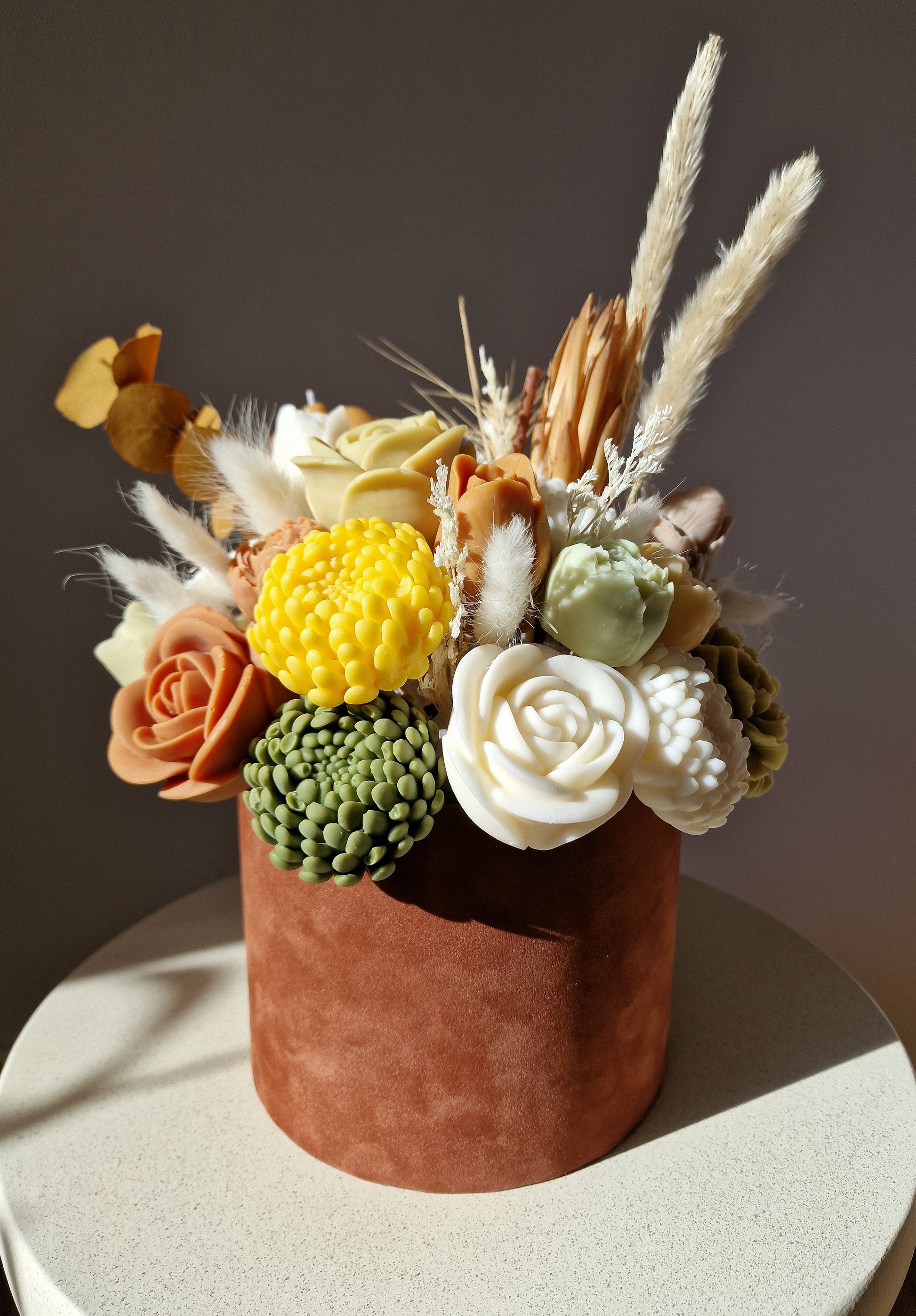 Cutie florală din lumânari - o idee de cadou unică, care nu numai că încântă ochiul pentru o perioadă lungă de timp, dar adaugă și o atmosferă unică oricărui interior. Cutiile noastre conțin flori delicate sculpatate manual, veșnice, care nu se vor ofili niciodată – care ulterior pot fi folosite si separat ca lumânări.