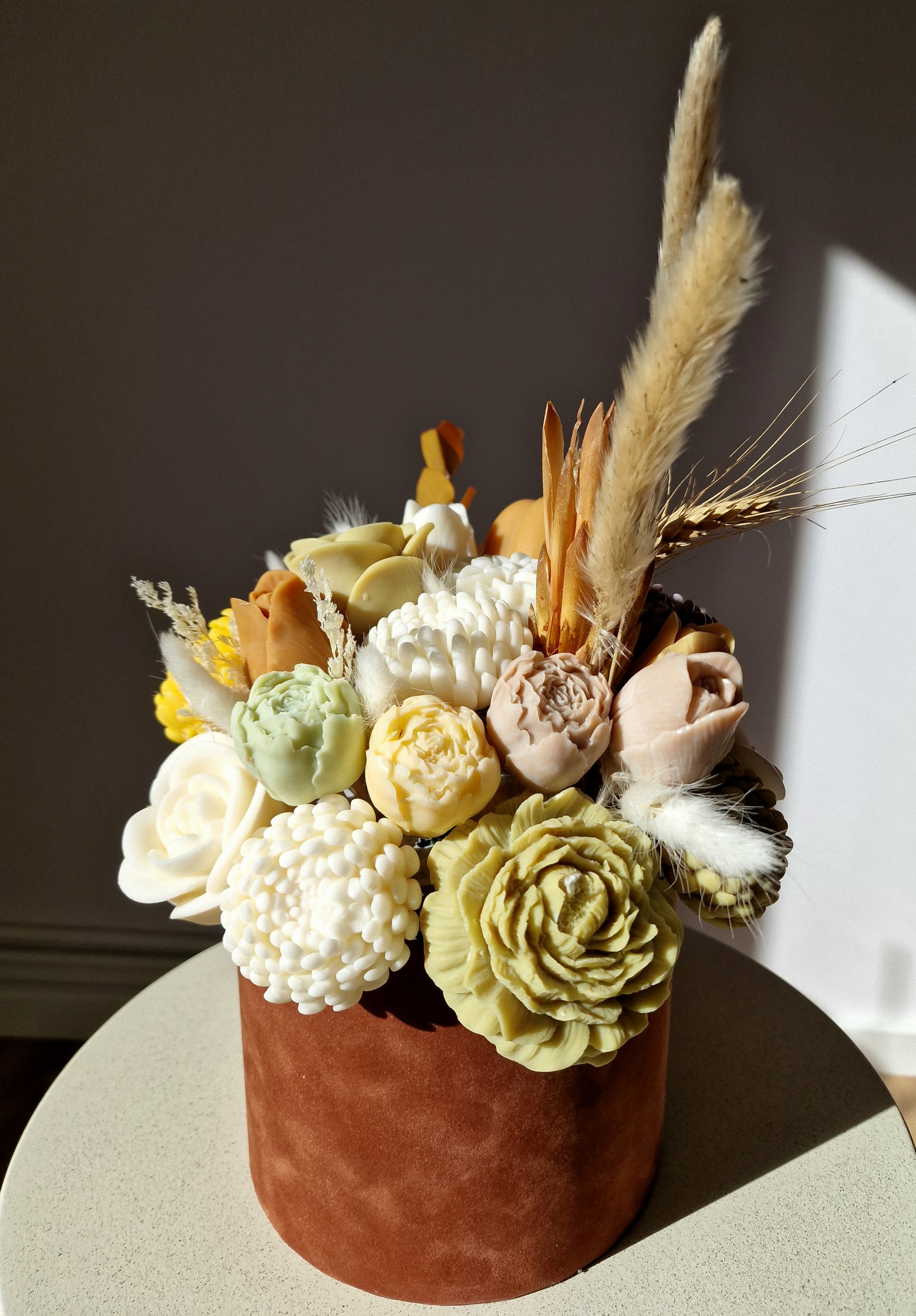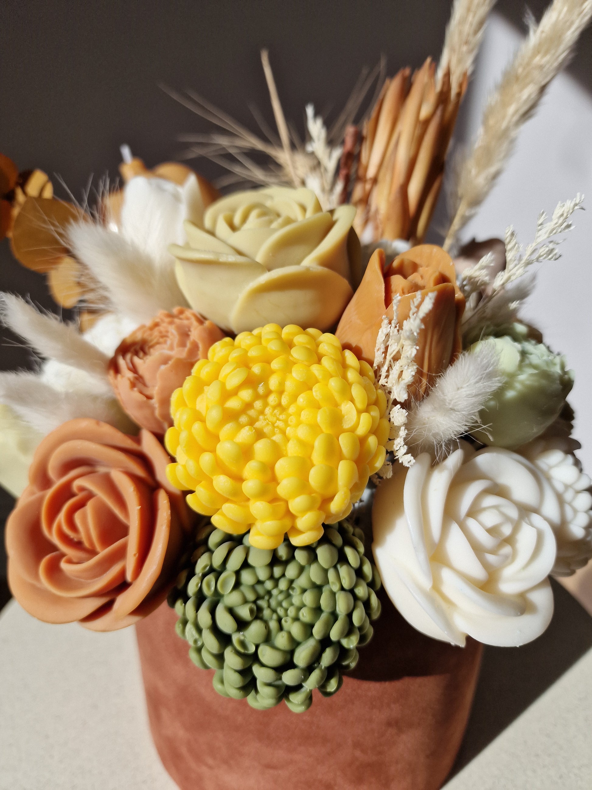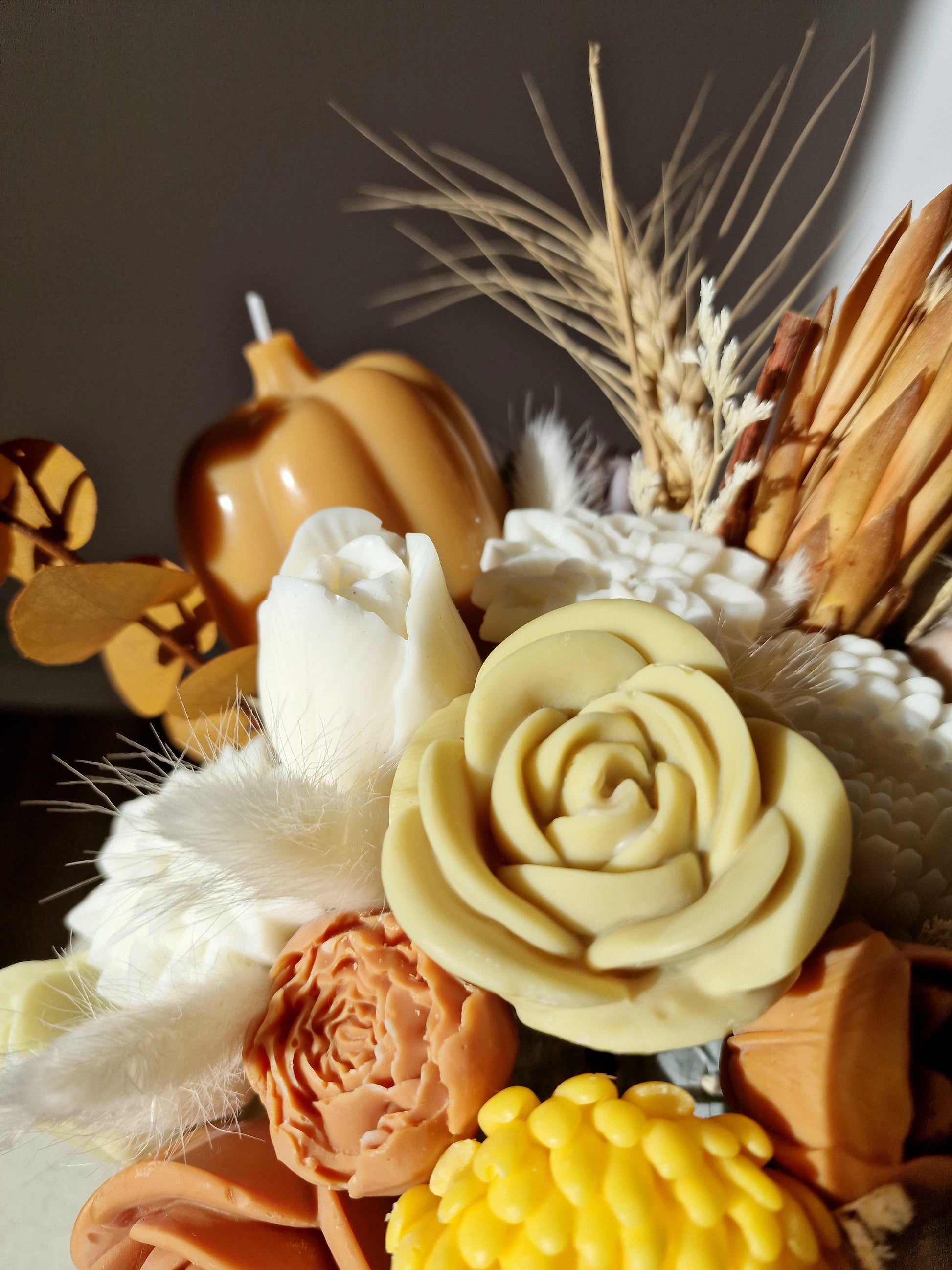 Notele aromatice de toamnă târzie se împletesc cu texturile moi, tonurile pământii și accentele boho, creând aranjamente ce transformă orice spațiu într-un colț de liniște și frumusețe. Toate lumânările noastre sunt fabricate din ceară de soia de cea mai înaltă calitate, asigurându-le durabilitatea și siguranța. Sunt cadoul perfect care va încânta cu siguranță o persoană dragă și va rezista mult timp.