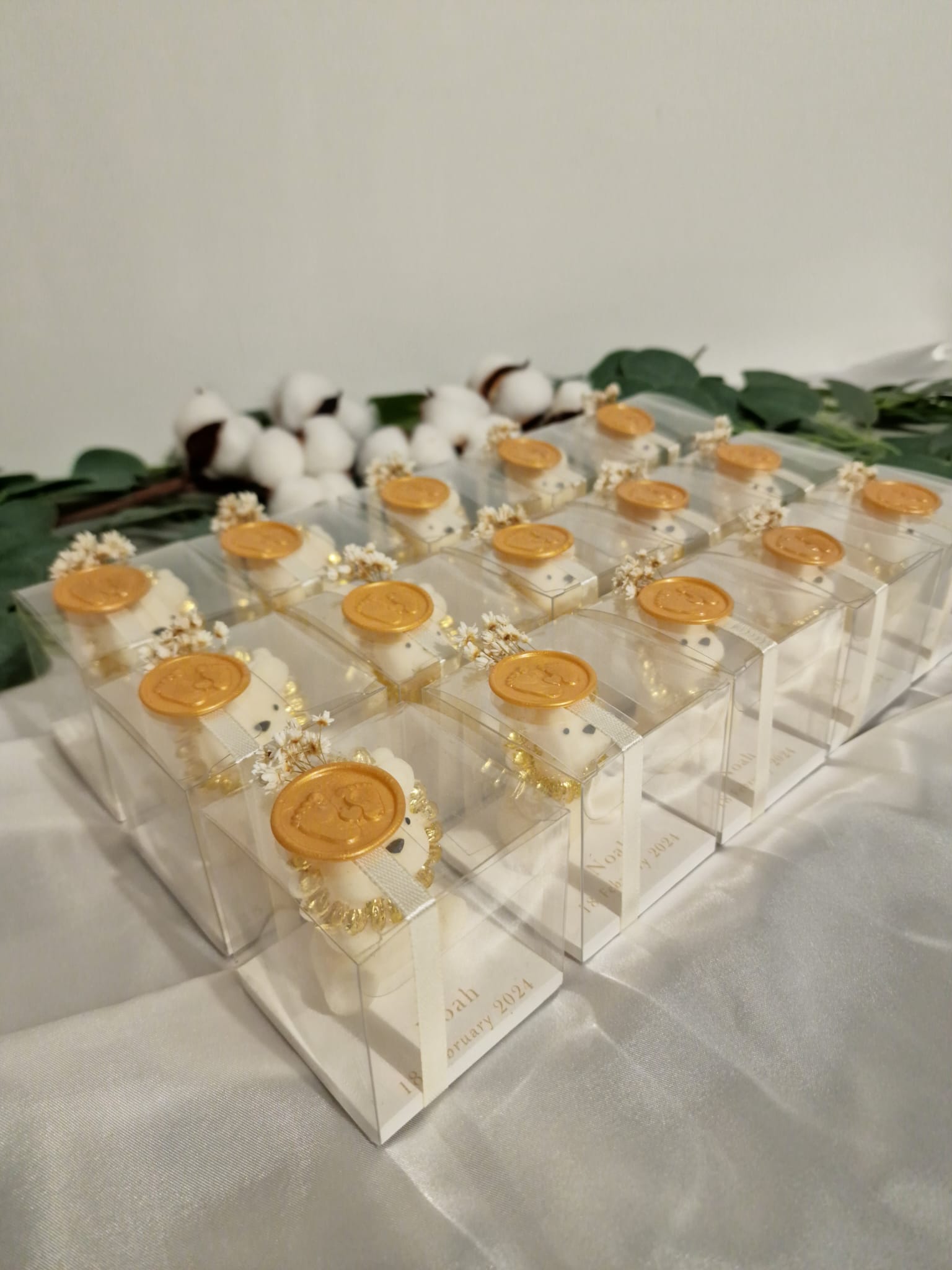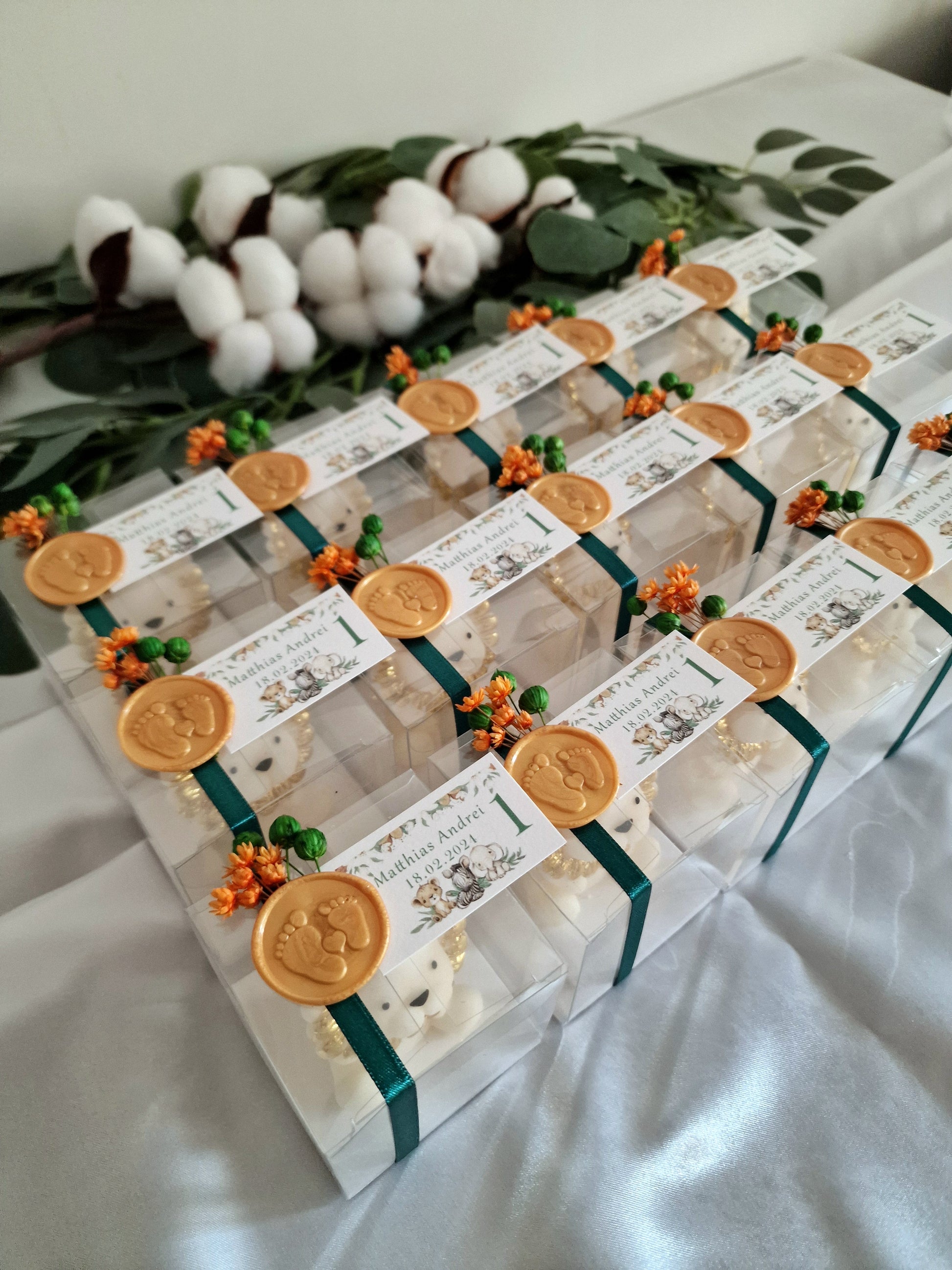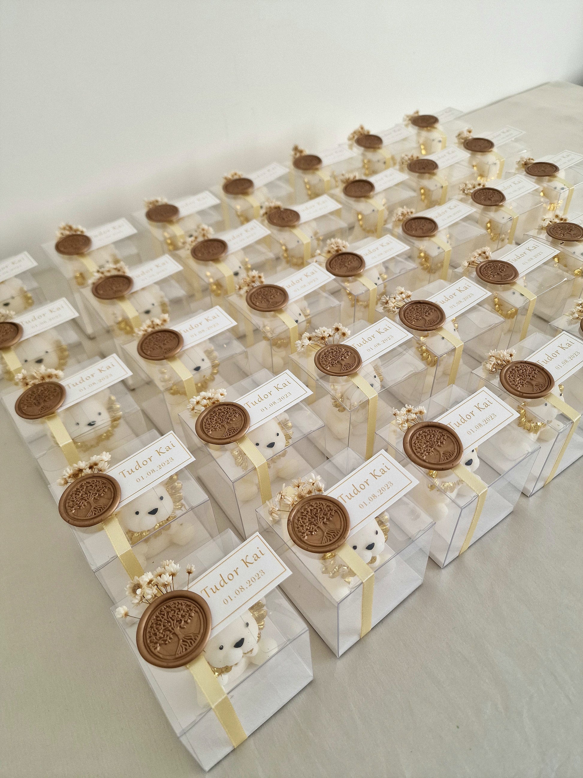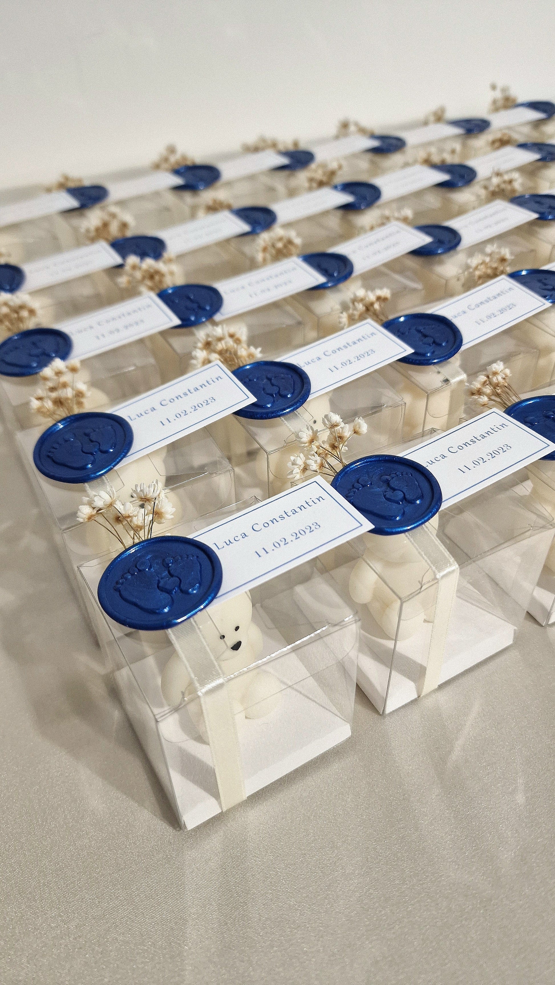 Vă rugăm să specificați finisajele de ambalare preferate (panglici, note de mulțumire, buchețe de flori etc) în rubrica specială de personalizare! După plasarea comenzii, veți fi contactată pentru a discuta în detaliu opțiunile de personalizare ale mărturiilor, astfel încât rezultatul final să reflecte perfect dorințele dumneavoastră.