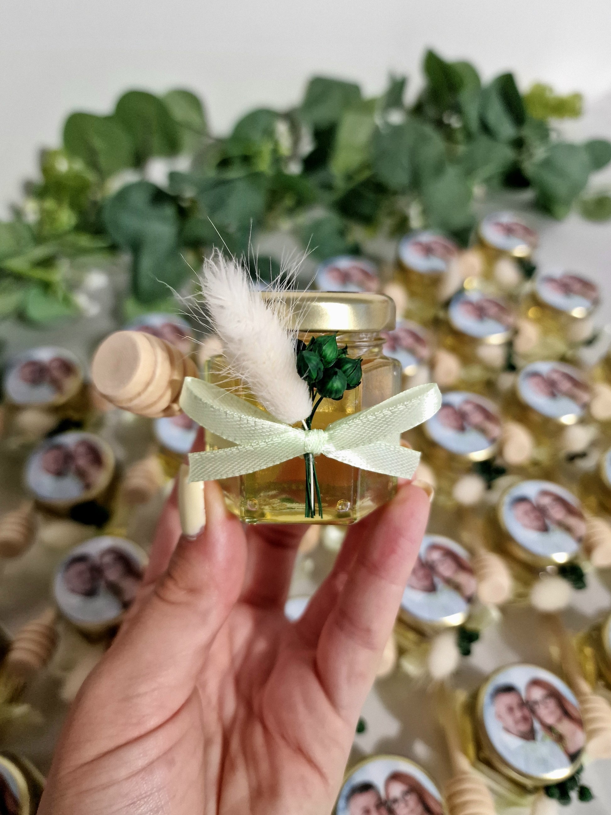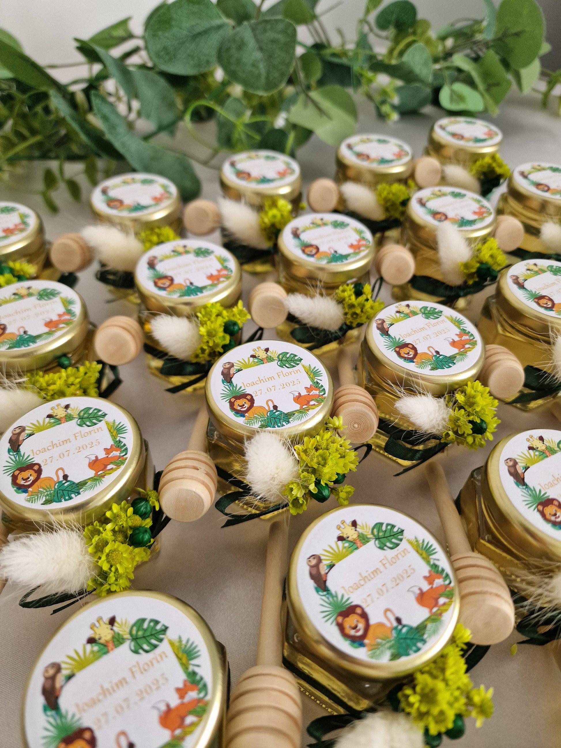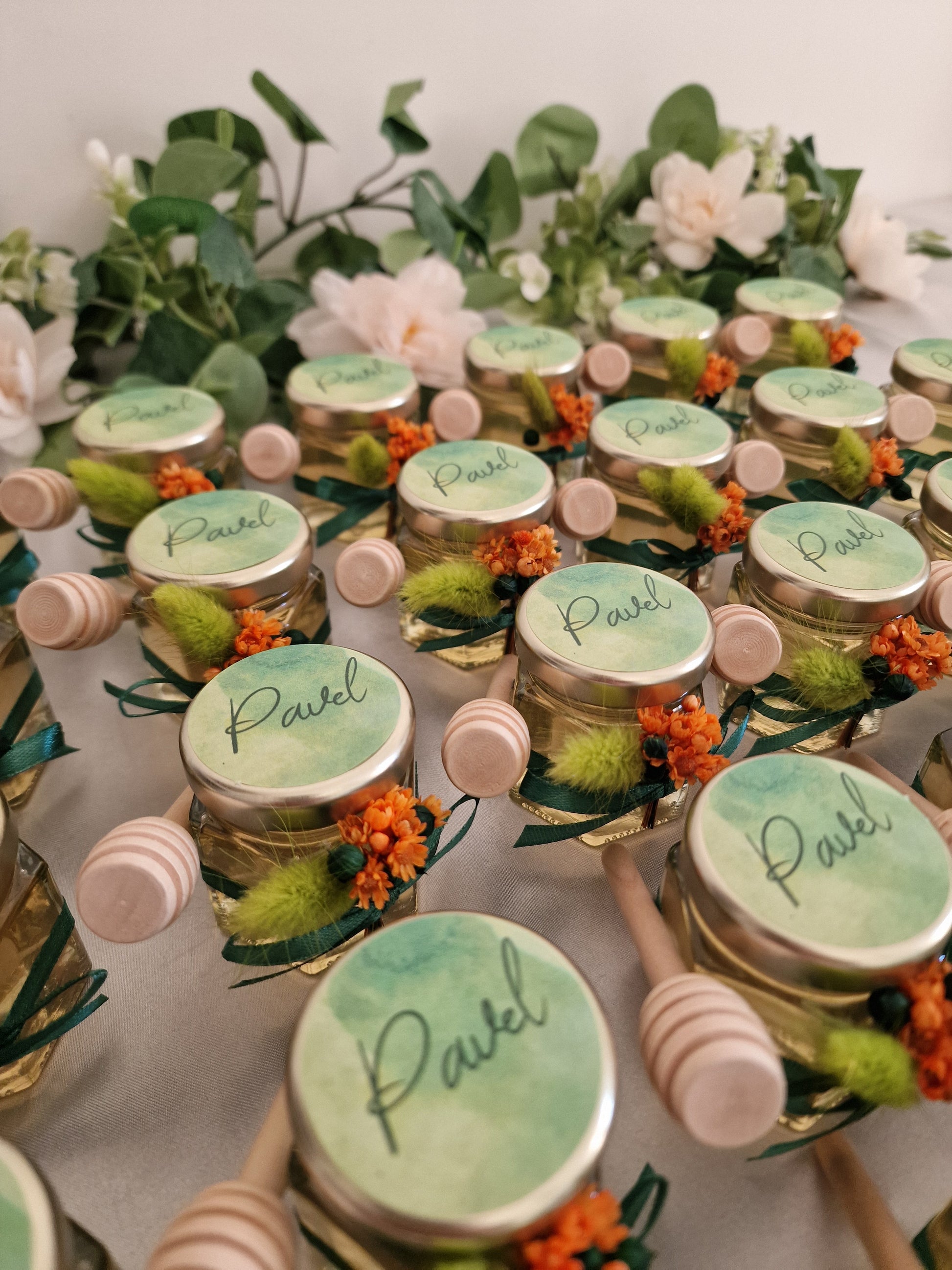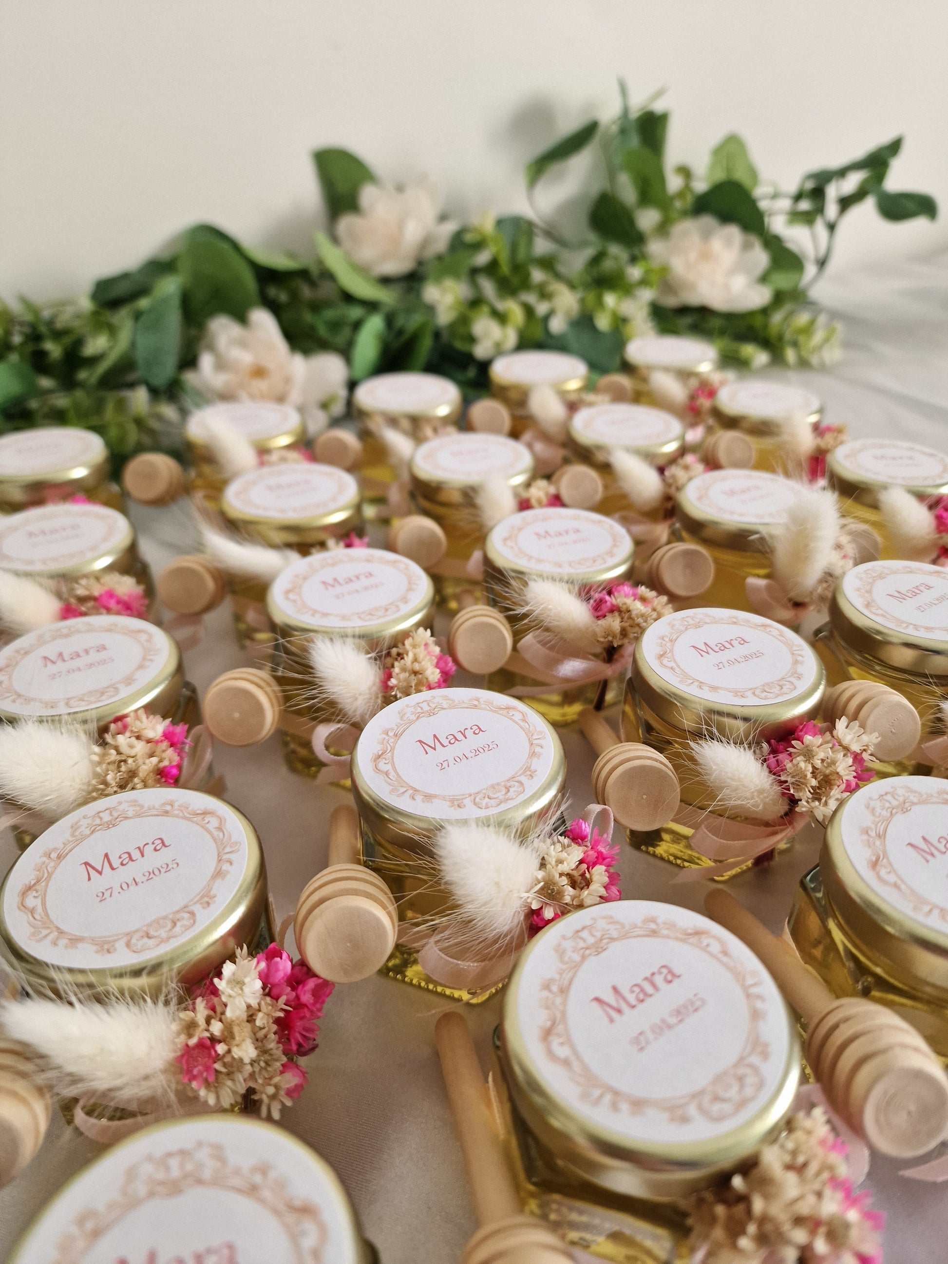 Vă rugăm să specificați finisajele de ambalare preferate (panglici, note de mulțumire, buchețe de flori etc) în rubrica specială de personalizare! După plasarea comenzii, veți fi contactată pentru a discuta în detaliu opțiunile de personalizare ale mărturiilor, astfel încât rezultatul final să reflecte perfect dorințele dumneavoastră.