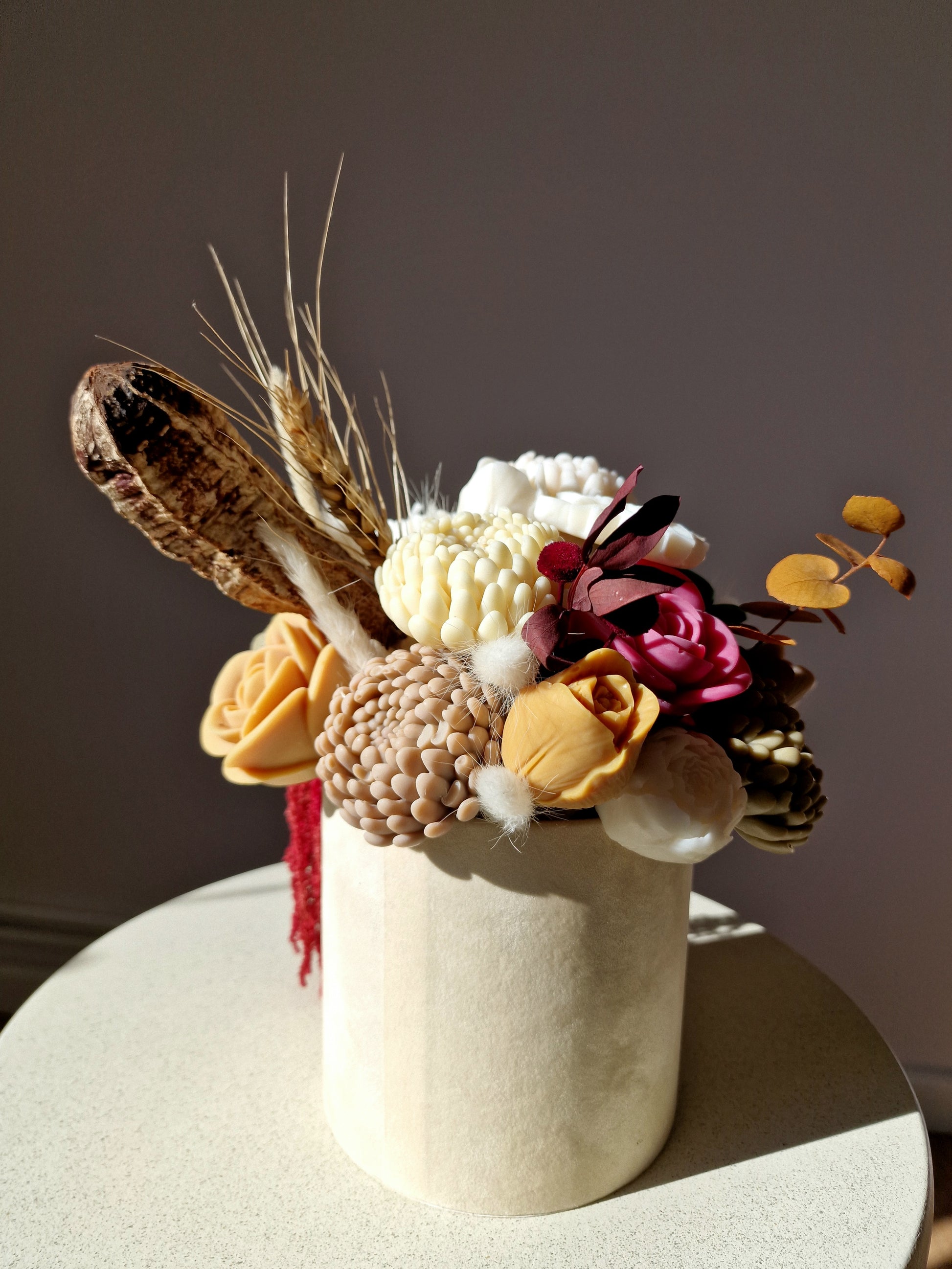 O idee de cadou unică, care nu numai că încântă ochiul pentru o perioadă lungă de timp, dar adaugă și o atmosferă unică oricărui interior. Cutiile noastre conțin flori delicate sculpatate manual, veșnice, care nu se vor ofili niciodată – acestea pot fi folosite si separat ca lumânări.