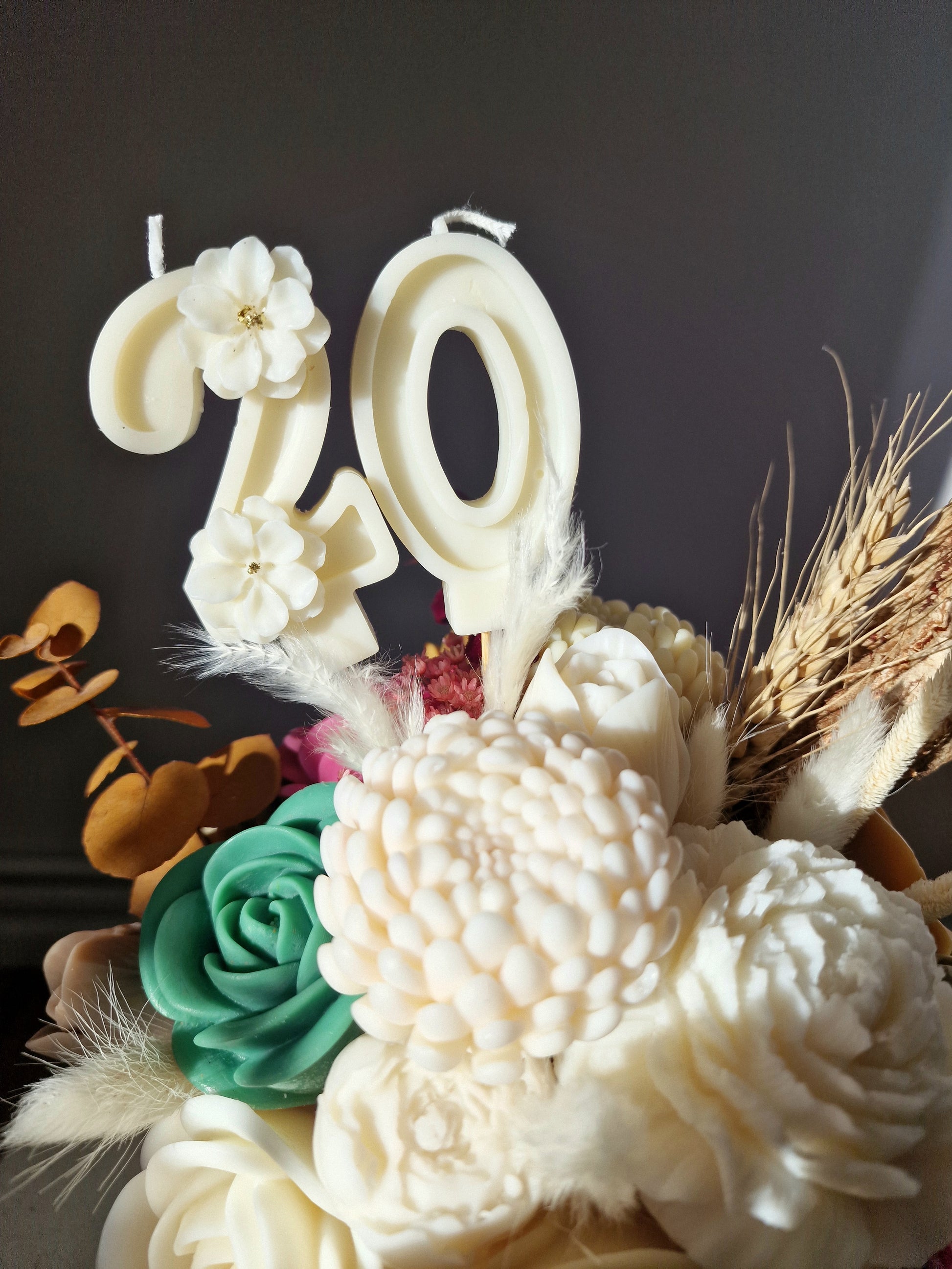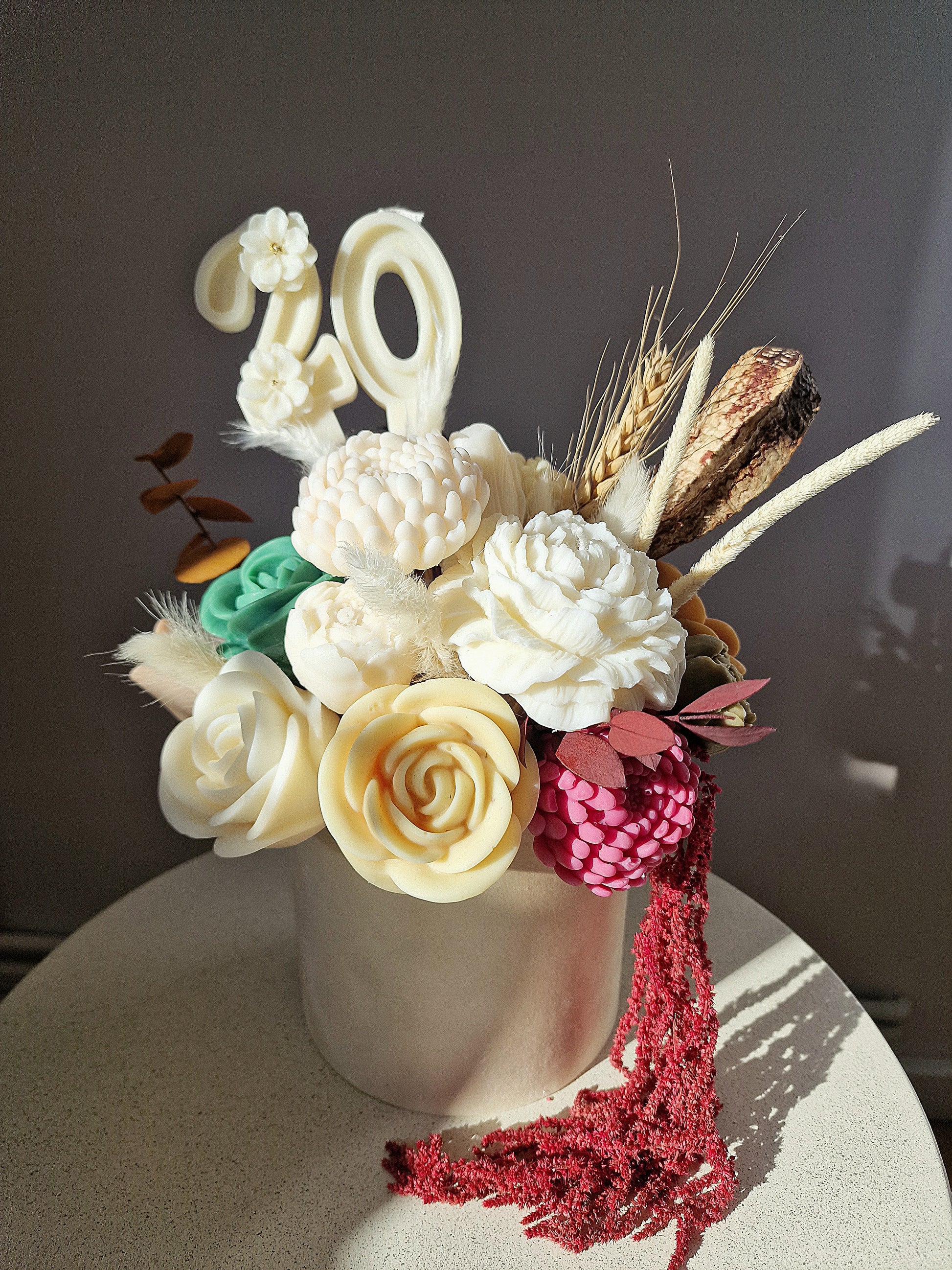 Transformă fiecare aranjament într-un dar personal — putem adăuga cifre din ceară pentru aniversări, mesaje personalizate sau fotografii.